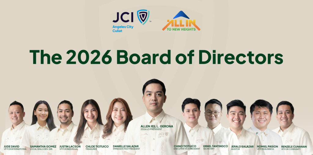 Your JCI Angeles City Culiat Board of Directors is 2026-ready! Under the leadership of 2026 LO President Atty. Allen Jeil L. Gerona, this powerhouse team is locked in and fully prepared for the year ahead. From community development to international relations, we are all set to take our chapter To New Heights. #allintonewheights #jciangelescityculiat